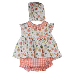 favorite_border favorite Añadir a la lista de deseos zoom_in Vista rápida Vestido frutas bebé Baby Ferr Colorido vestido de 3 piezas para bebé de Baby Ferr. Diseño confeccionado en tejido de frutas en tonos naranjas y verdes combinado con tejido vichy... Añadir a la cesta Precio 29,95 €