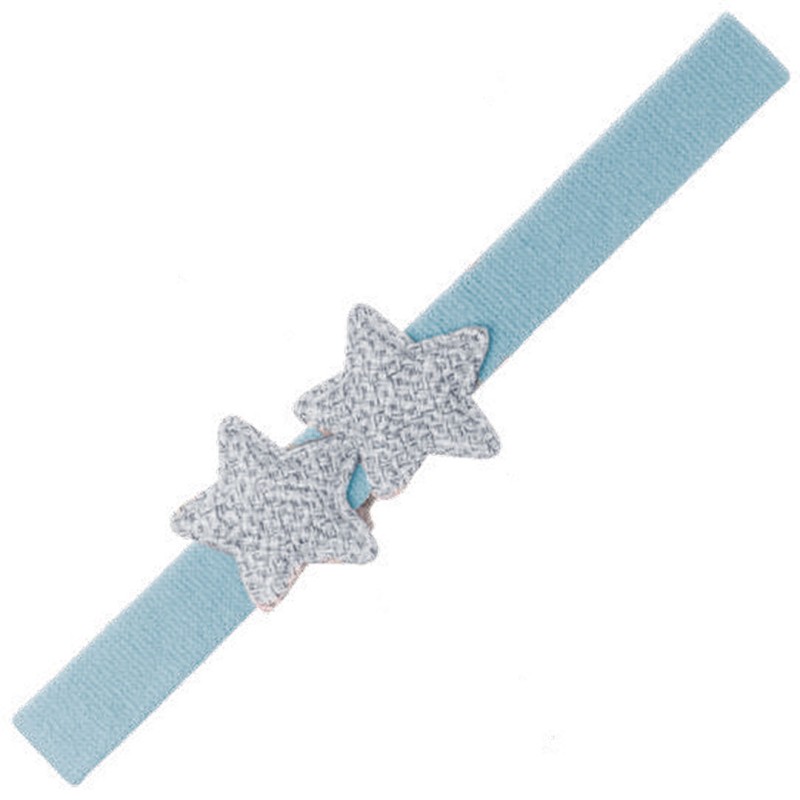 Diadema tipo turbante para bebé de la marca Siena. Con 2 estrellitas con apariencia de enrejado.