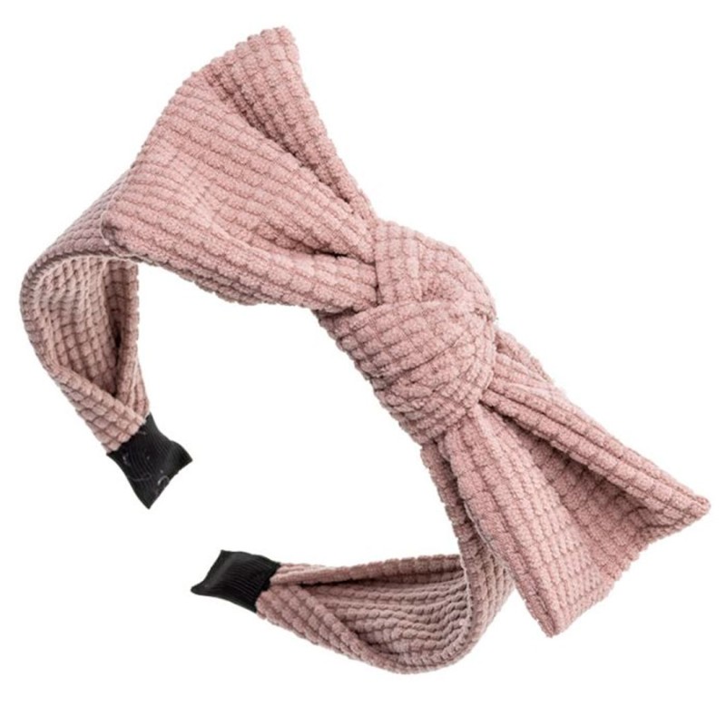 Diadema con lazo de Siena, con tejido de cuadraditos en relieve.