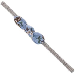 Turbante de la marca Siena con lazo anudado con estampado de cerezas. Goma fruncida y fina.