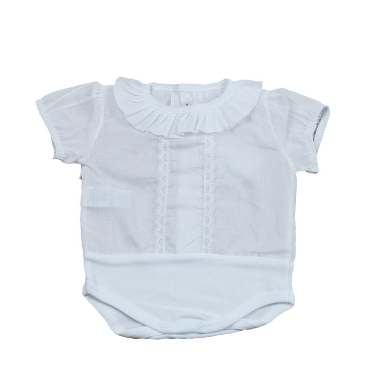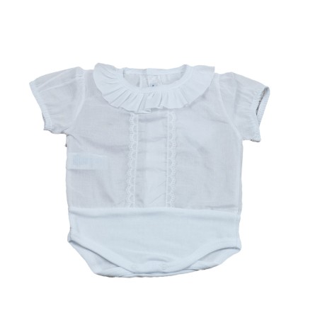 Body para bebé de Calamaro de manga corta. Modelo fabricado en tejido fino con detalle de cuello de volante y puntilla en la zona delantera.