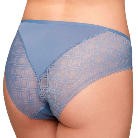 Braga para mujer de Ysabel Mora de altura Midi. En tejido de microfibra, lisa por delante y encaje geométrico por detrás. Sin costuras para no marcar bajo la ropa. Composición: 90% Poliamida, 10% Elastano.