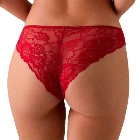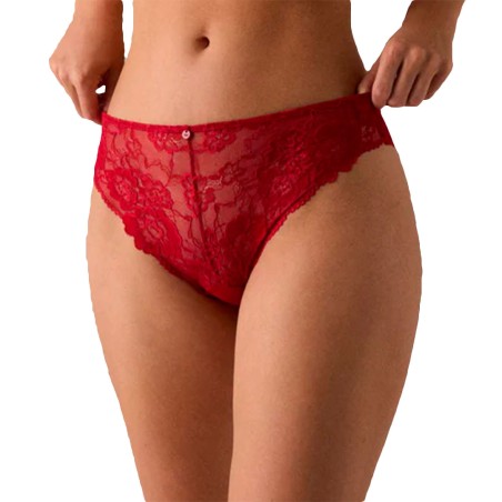 Braga brasileña de Ysabel Mora para mujer de la colección Navidad. Diseño confeccionado en tejido de encaje rojo. Elegante y original.