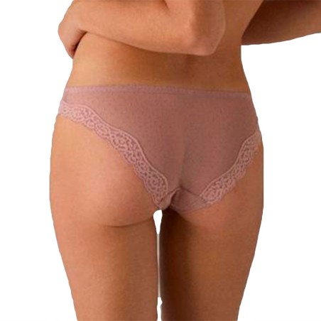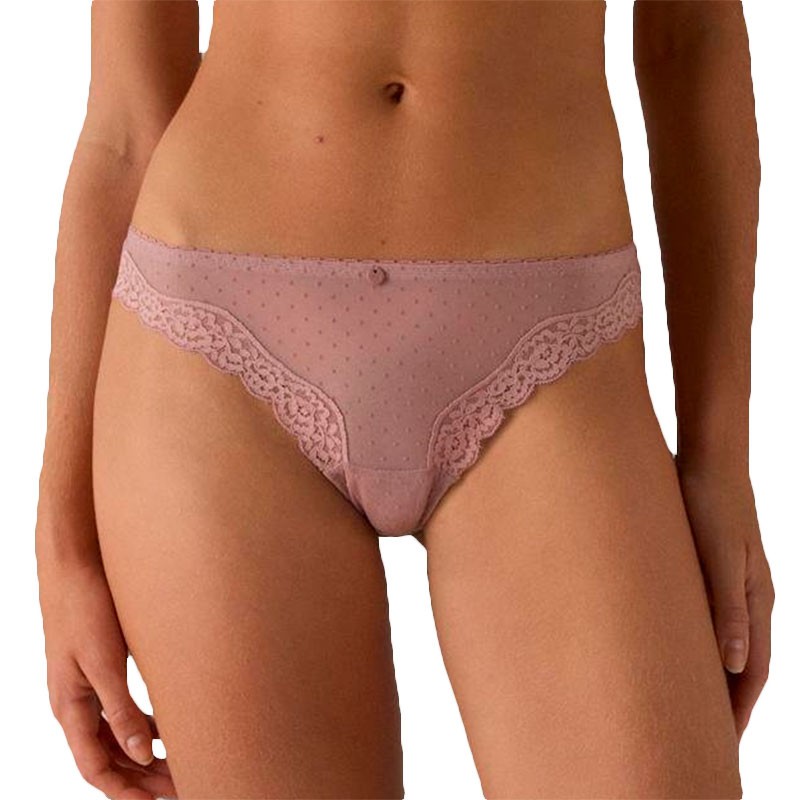 Braga de corte mini para mujer de Ysabel Mora. Confeccionada en plumeti con detalles de encaje. Composición: 96% Poliéster, 4% Elastano