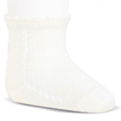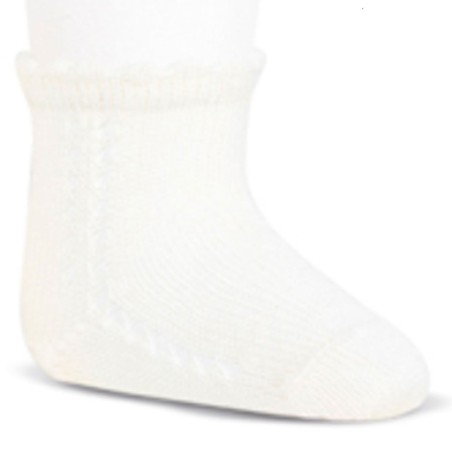 Calcetín corto de perlé de la marca Cóndor con calado lateral. Composición: 80% algodón 20% poliamida tallas 000 y 00. 100% algodón a partir de la talla 0 a 6 años.