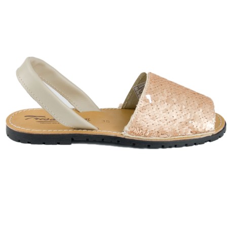 Menorquna lentejuelas para mujer. Confeccionada en cuero con suela de goma. Fabricado en España.