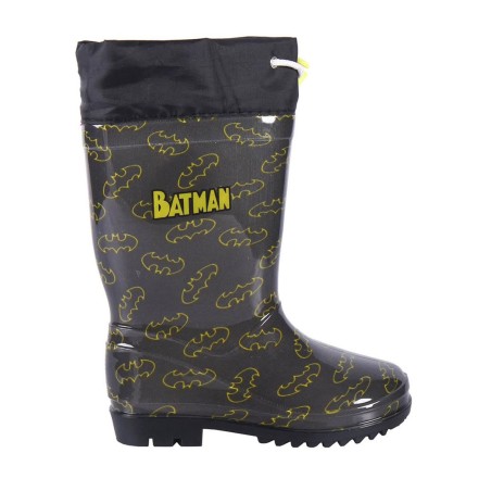 Bota agua niños Batman. Modelo con print de logo Batman por toda la bota y letras en el lateral. Lleva detalle superior de tela con cordón para ajustar a la pierna y favorecer la adaptación.