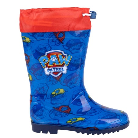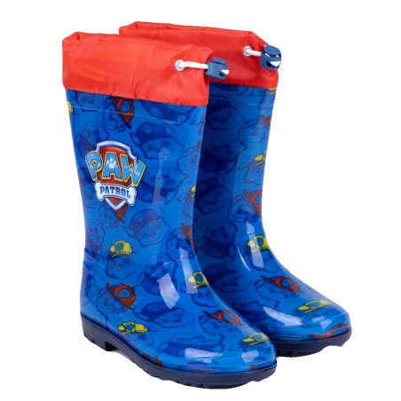 Bota de agua para niños de Paw Patrol. Modelo con estampado de caritas de sus personajes favoritos. Tela en la parte superior con un cordón para ajustar.