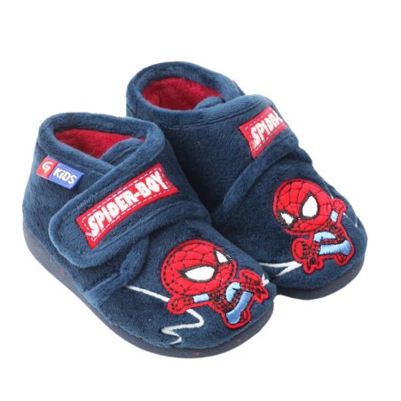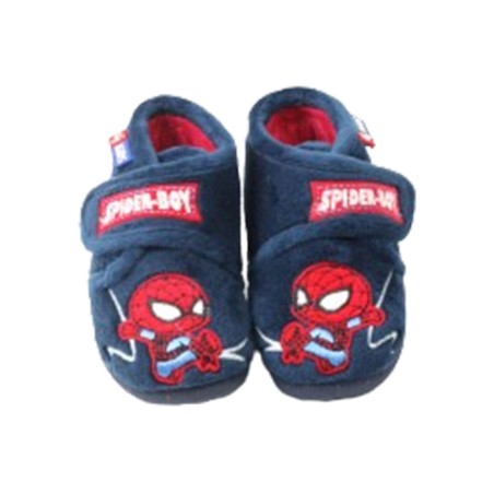 Botita de casa para niños de Garzón de invierno. Modelo confeccionado en tejido de pelo suave con detalles bordados de Spiderman y cierre de velcro. Lleva suela de goma antideslizante.
