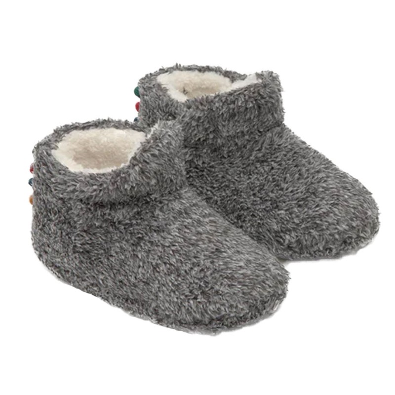 Modelo de pelo suave tanto en el interior como en el exterior. Lleva detalle de cresta de dinosaurio en la parte trasera. Suela de caucho antideslizante con aroma de vainilla.
