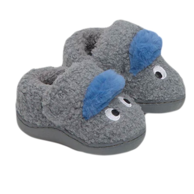 Zapatilla de casa para niños de Ysabel Mora. Divertido diseño con ojos bordados de monstruo y cierre de velcro a contraste para una mejor adaptación.