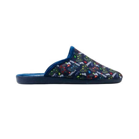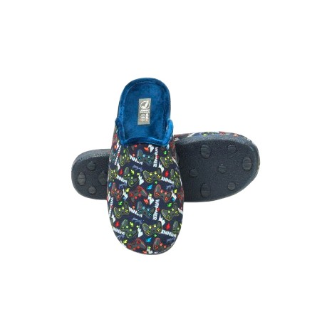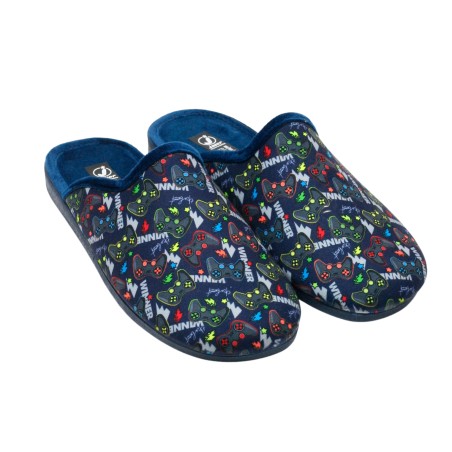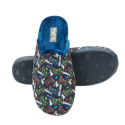 Zapatilla para niños de Javer. Modelo divertido con estampado de videojuegos de colores. Suela de goma antideslizante e interior cálido.