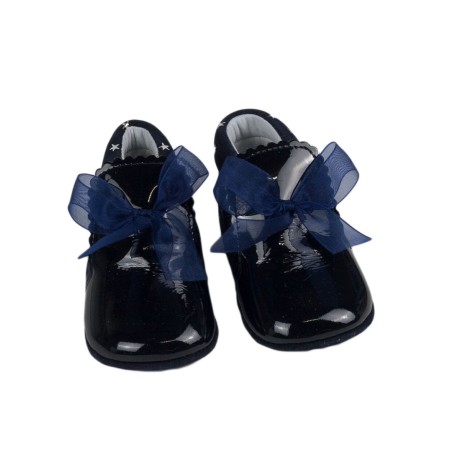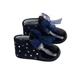Botita para bebé de Made In Spain. Modelo combinado en charol y serraje. Cierre con lazo. Suela blanda. Fabricado en España.