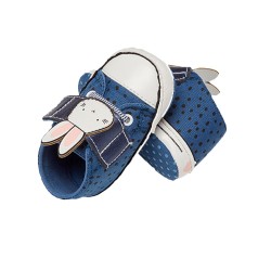 Deportivas para bebé de Mayoral. En color liso con topitos en negro, cierre delantero con velcro y un simpático conejito en el frente. Composición: 70% Algodón 30% Poliuretano. Interior de algodón. Suela blanda