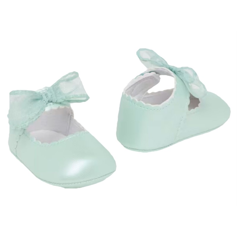 Zapatito para bebé de Mayoral. Ideal para ceremonia, con suela blanda y cierre de velcro. Detalle de lazo decorativo.