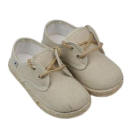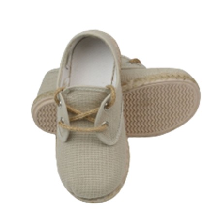 Zapato par aniños de Javer. Modelo de lino con con cordones . Suela de goma con esparto en los laterales. Elegante, fresca y perfecta para cualquier ocasión especial.