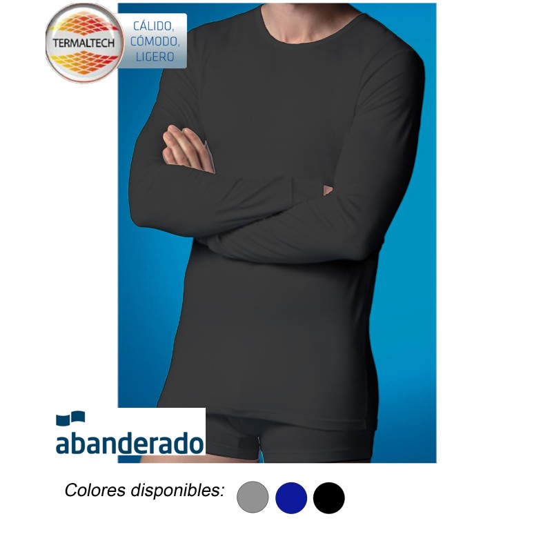 Camiseta manga larga con cuello redondo con tecnología TERMALTECH, una nueva fibra de Abanderado que retiene el calor en su interior. Mod 592.