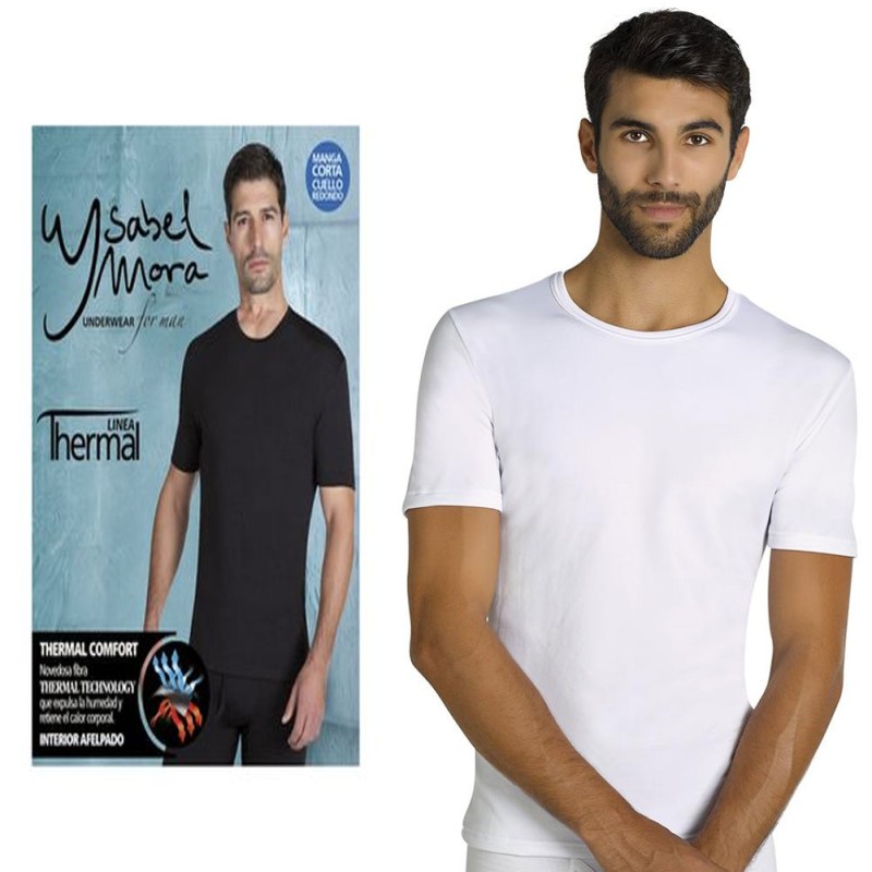 Casmieta térmica hombre Ysabel Mora. manga corta. Cuello redondo. Confeccionada en tejido elástico con felpa interior para retener el calor corporal. Coposición: 92% Poliéster, 8% Elastano.