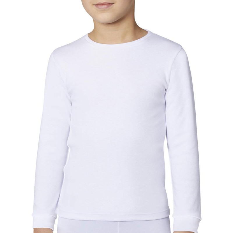 Camiseta de Algodón para niño de ysabel Mora. Manga larga, interior felpado y con escote redondo. Tejido antialergénico. Composición: 100% Algodón.
