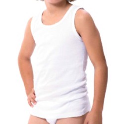Camiseta de asas interior para niño de la marca FABIO. Suave tejido de algodón que mantiene el cuerpo seco. Composición: 100% Algodón. Fabricado en España.