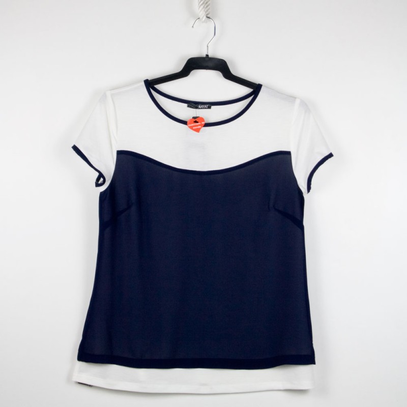 Camiseta mujer Nayat. Con tejido doble en la parte delantera. Composición: 95% Poliéster, 5% Elastano. Fabricado en España.