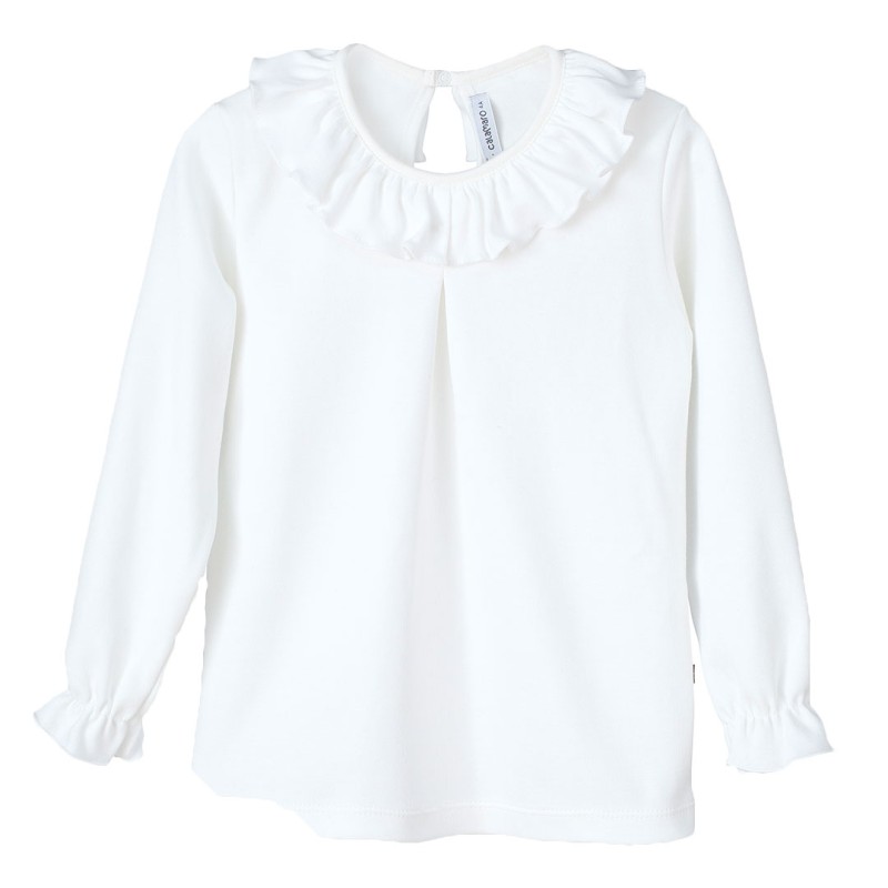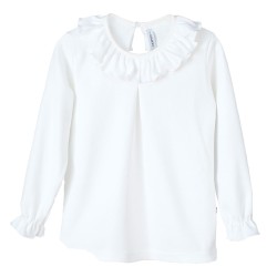 Camisa básica de Calamaro para niños. Manga larga y volante en el cuello. Botón en la espalda.