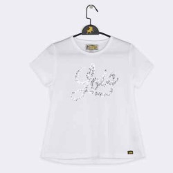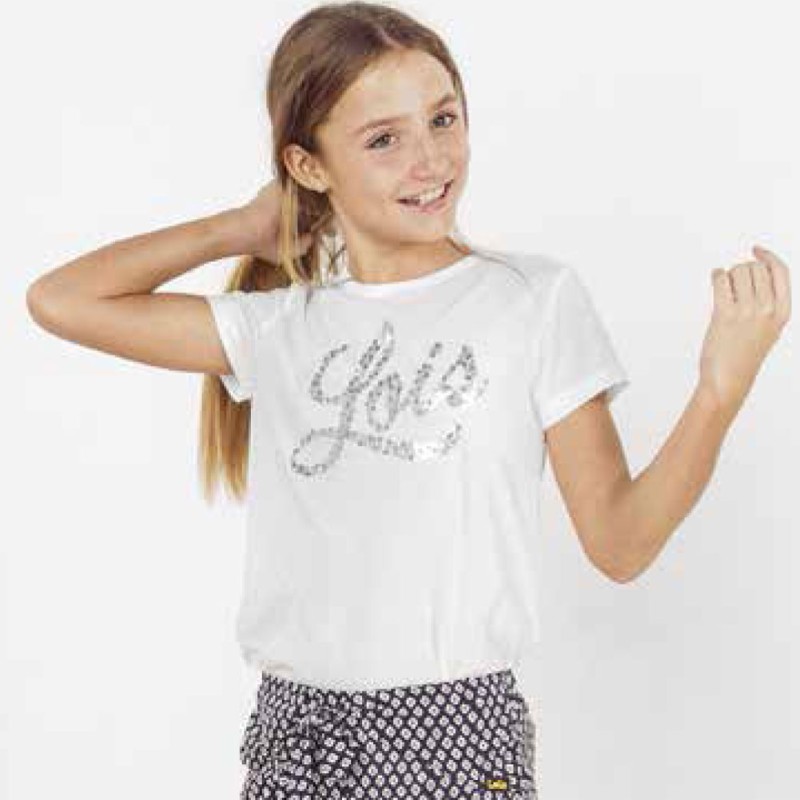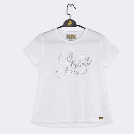 Camiseta Lois en manga corta para niña. Corte sencillo, tan solo la marca con detalles en plata.