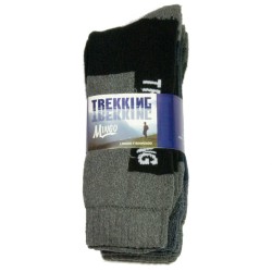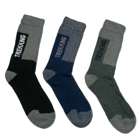 Calcetín trekking Pack/3. Calcetín térmico con caña alta perfecto para bota de senderinsmo. Talla U (41/45). Composición: 80% Algodón, 17% Poliamida, 3%Elastano. Fabricado en España.