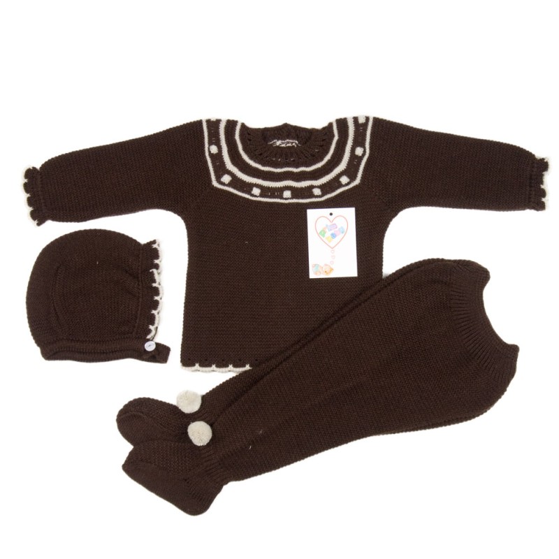 Conjunto Primbaby de jubón, polaina y gorrito. Fabricado en España.