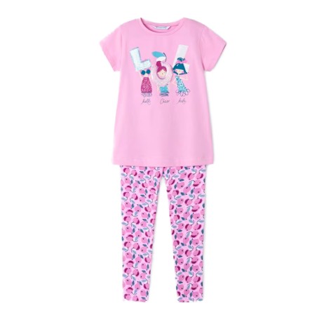 Conjunto de 2 piezas de Mayoral para niña. Camiseta de manga corta con un bonito print en el frente. Legging estampado a juego.