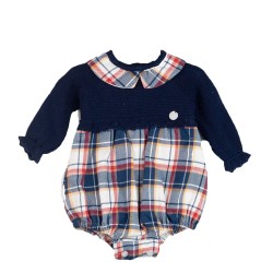Pelele Navideño de Prim baby para bebé. Original diseño combinado en punto y tela de cuadros. Cuello a contraste en cuadros. Ideal para que los más pequeños estén cómodos y abrigados.