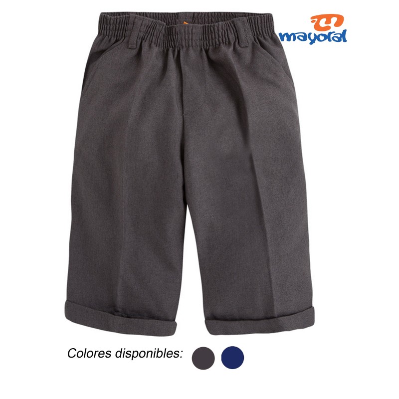 Pantalon colegial corto tallaje infantil de Mayoral. Con goma y sin botón para mayor comodidad.