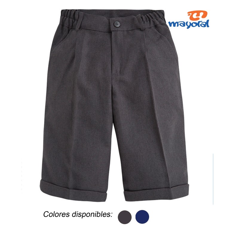Pantalon colegial corto tallaje junior de Mayoral. Con botón y goma.
