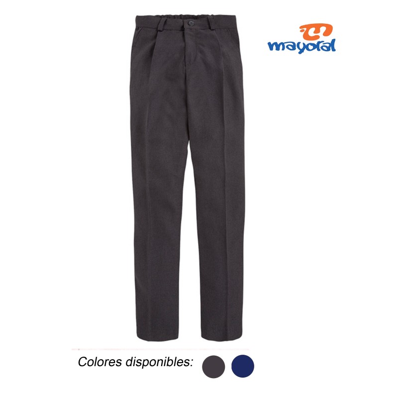 Pantalon colegial largo tallaje junior de Mayoral. Con botón y goma.