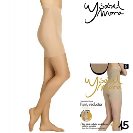 Panty reductor Ysabel Mora de 15DEN. Efecto moldeador en cintura, abdomen y muslos. Costuras planas y rombo. Reduce hasta 2 tallas.
