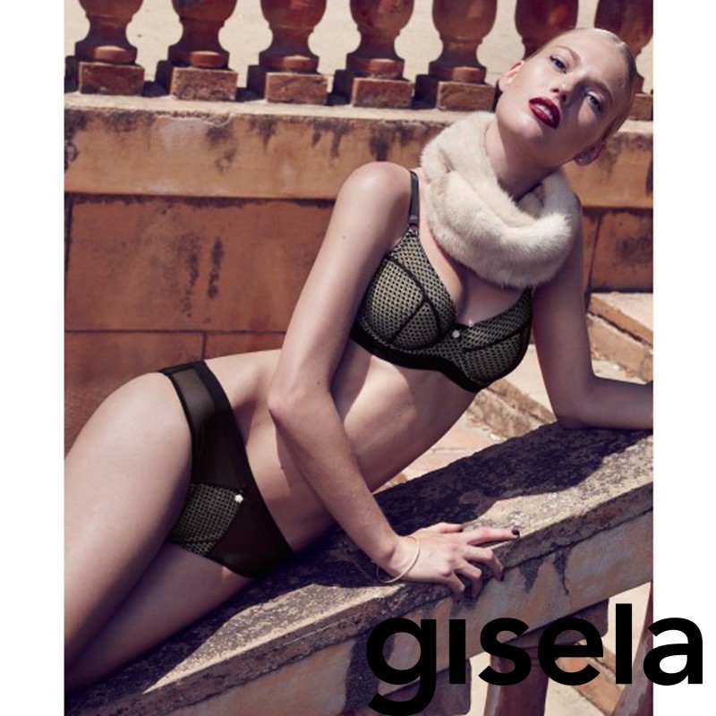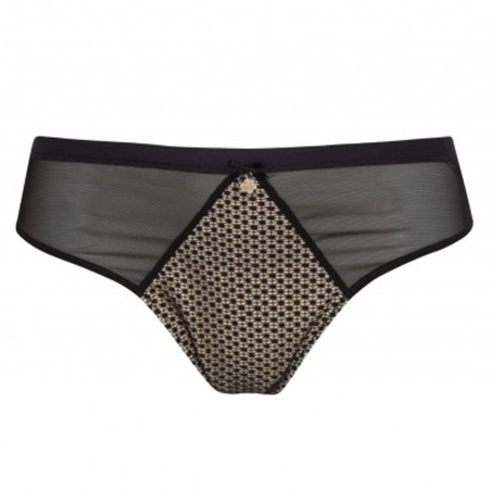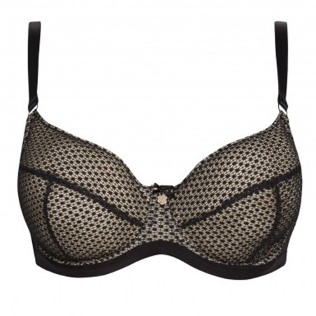 Conjunto sujetador copa C con encaje y braga con encaje y tejido semitransparente.