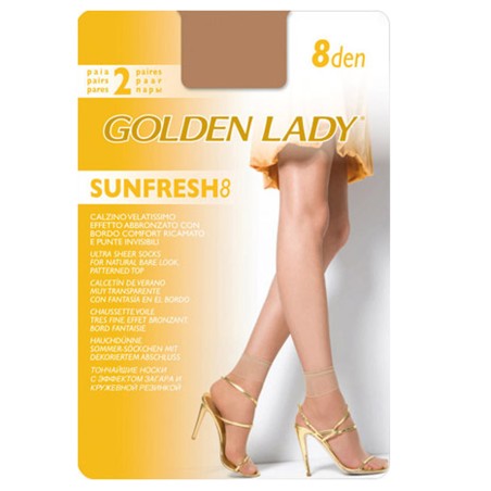 Pack de 2 tobilleros de Golden Lady finos de 8 Den. Goma ancha en el tobillo con una pequeña puntilla.
