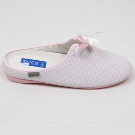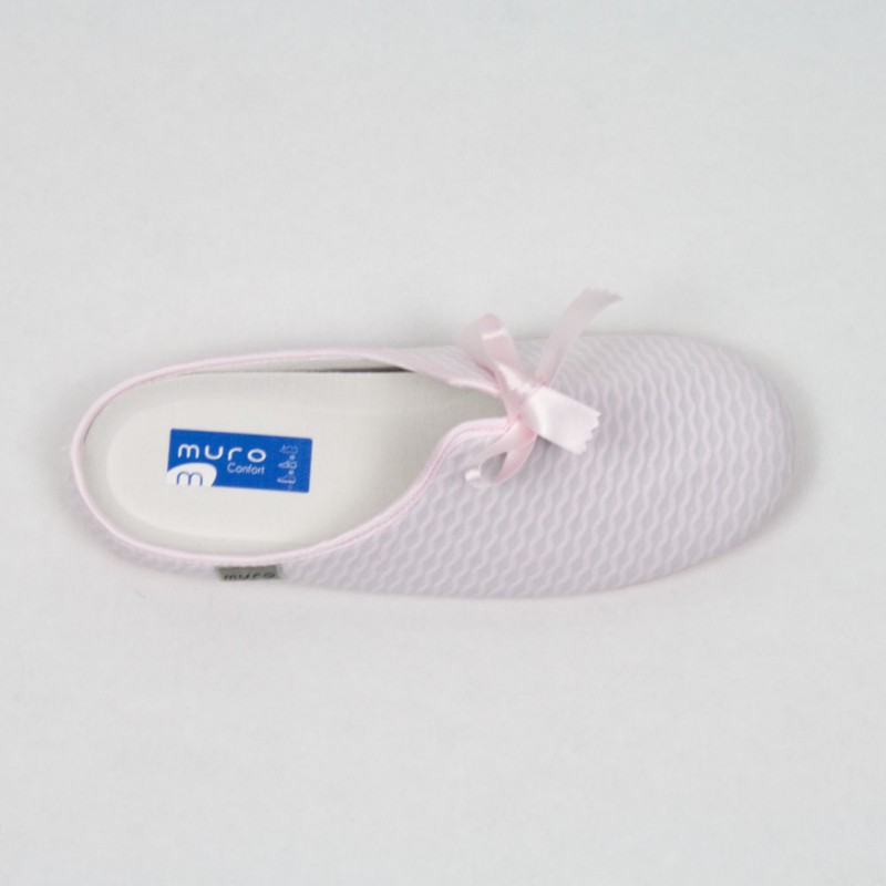 Zapatilla para mujer en piqué celeste. Cómoda abertura superior que da una mayor amplitud. Detalle de lazo enn la parte superior. Fabricada en España.